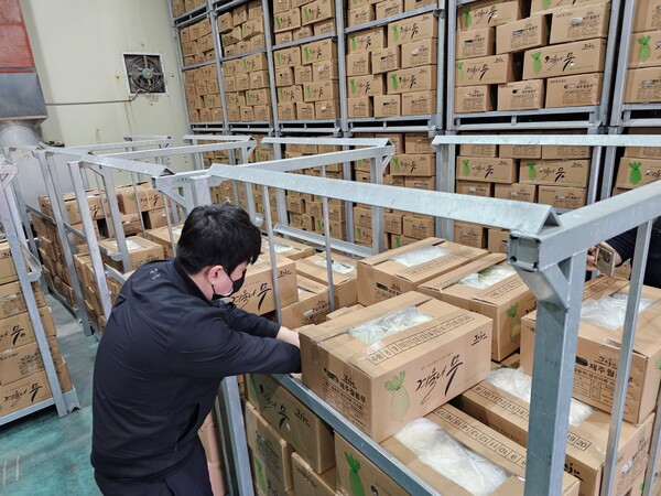 저장무는 통상적으로 2월부터~4월 상순경까지 입고된다. 주 출하지는 제주도로, 지난해 이상기온 탓에 정식이 늦어지면서 수확작업도 늦어져 저장 입고 작업 또한 평년보다 미뤄졌다.