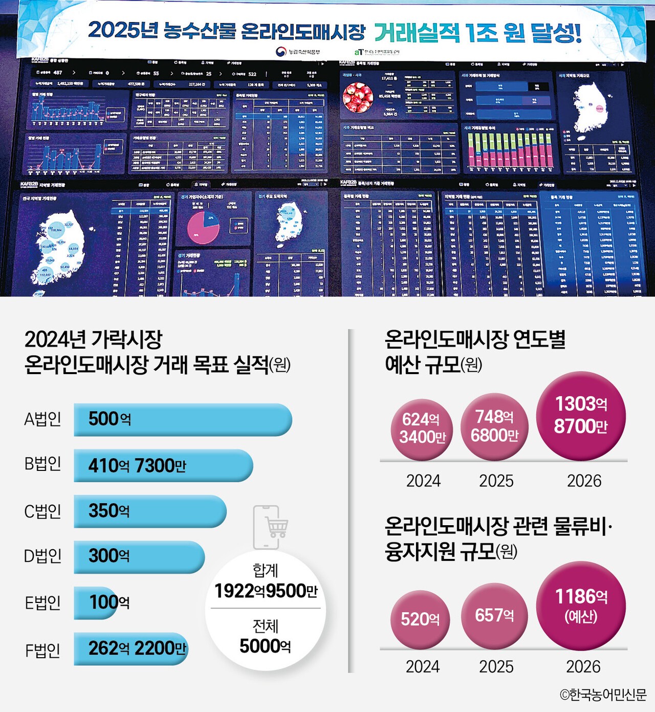 한 도매시장 관계자는 “온라인도매시장 거래 목표 달성을 위해 도매법인 등 오프라인 종사자들에게 계속부담을 줬다”며 “실질적인 온라인 도매시장 첫 해였던 2024년에는 농식품부가 주단위, 월 단위로 도매법인 실적을 관리했다”고 전했다.