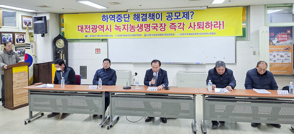 이날 농업인단체들은 노은시장에서 분쟁이 발생할 경우 적극적으로 중재에 나서 해결해야 할 대전시가 되레 사태를 악화시키는 것은 미흡한 행정력 탓이라고 강하게 질타했다.