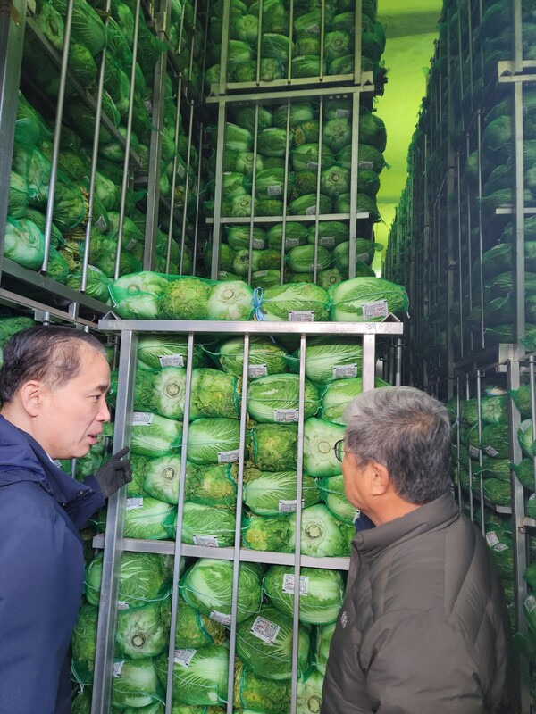 가락시장 도매시장법인 대아청과(주) (대표이사 이상용)는 지난 2월 20일~3월 8일(3월4~6일 현장 실사)까지 월동배추를 저장한 출하자, 출하조직, 저장업자 등을 대상으로 2024년산 저장배추 전수조사를 실시한 결과 올겨울 밭작업이 빨리 끝나고 창고방출이 조기에 시작되면서 평년대비 5.4%, 전년대비 6.8% 적은 것으로 나타났다고 밝혔다.
