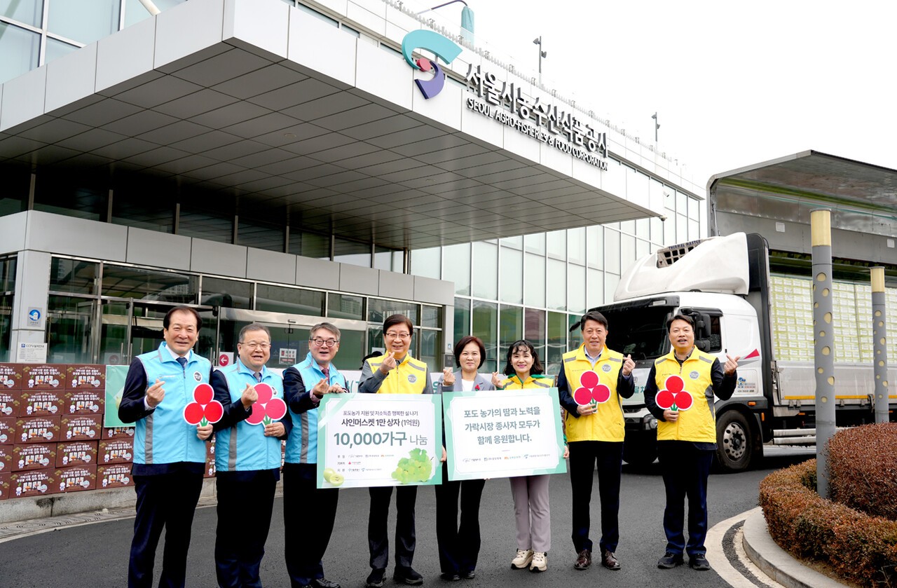 서울시공사는 이와 별도로 서울시 지원을 통해 가락시장 도매법인인 서울청과와 중앙청과, 동화청과가 함께 참여한 샤인머스켓 1만 상자 나눔도 진행했다. 명절을 맞아 취약계층과 신선한 과일을 나누고, 수급 불균형과 가격 하락으로 어려움을 겪는 포도 농가도 지원하는 상생의 의미를 담아 마련한 행사다. 샤인머스켓은 서울사회복지공동모금회를 거쳐 서울시 저소득 가정에 전달됐다.