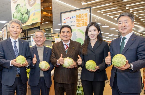 양배추 소비촉진행사에 나선 대아청과와 호반프라퍼티는 제주 한림농협을 통해 양배추 1만 통을 세계로마트에 공급했다세계로마트는 수도권 14개 지점에서 이를 공급가 대비 50% 할인된 가격으로 판매해 소비자 부담을 낮추고 월동 양배추 소비 확대에 힘을 보탰다또한 판매 수익금 일부는 ()희망나눔마켓에 기부해 사회 취약계층 지원에 활용할 예정이다.